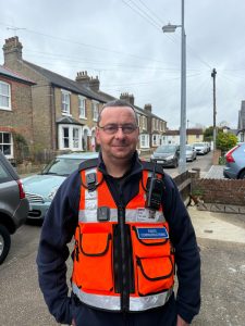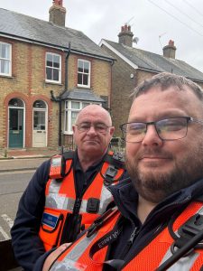 So here we have some members of Essex RAYNET modelling the new orange Hi Viz uniform which the group has adopted following requests from the LRF and Cat 1 responders in Essex. Just chilling before the Good Friday Procession in Maldon, Essex this morning.